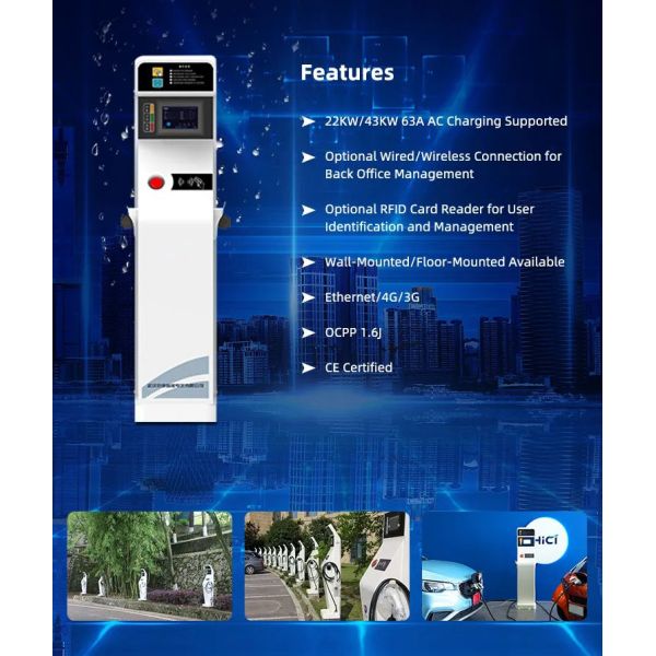 22kw Ac Electric Car Charger With Type 2 Ocpp 3G/4G RFID Ocpp1.6 APP Images |
